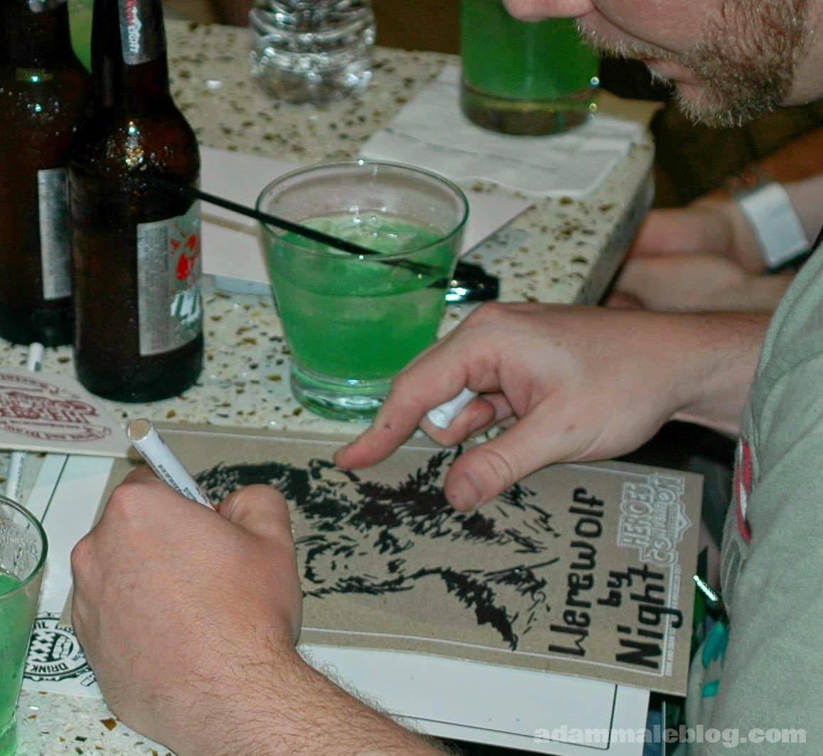 Thankfully, the booze and the snacks kept all the artists in a great mood so they didn't mind us peeking over their shoulders at their work! Here's our favorite shots! Click any pic to enlarge!